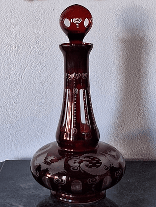 Linda Garrafa, licoreiro em vidro rubi, dimensões: 34cm de altura.