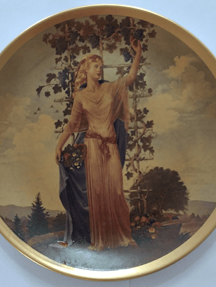 Quatro medalhões em porcelana francesa de Limoges, rehaussé main, representando as 4 estações. Dimensões aproximadas: 22,5 cm
