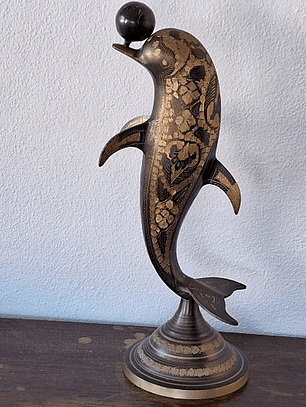 Castiçal em latão patinado, representando grifo